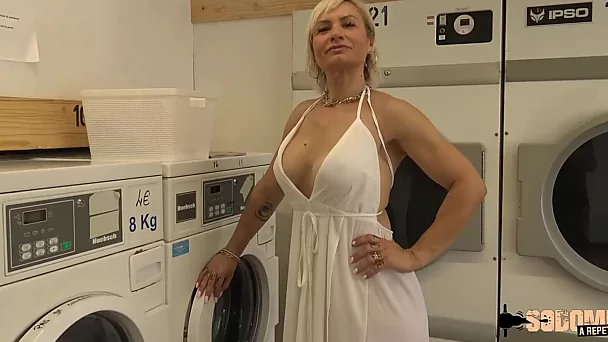 Met hot Blonde in a laundry and invite her to DP anal threesome in my flat