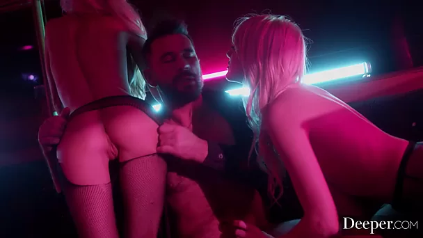 Two blonde devil girls bring Manuel Ferrara to heaven at the club