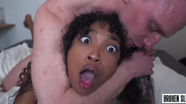 Broken teen with awesome naturals lets BWC dude treat her like a sex doll
