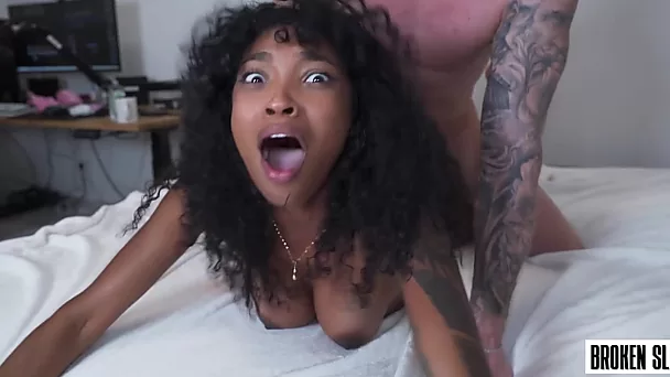 Interracial hot fuck with teen curly Ebony with huge tits nutting in her mouth Likes 0